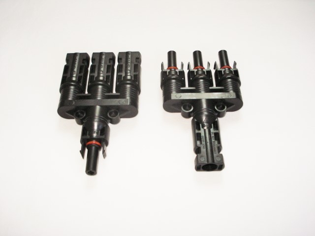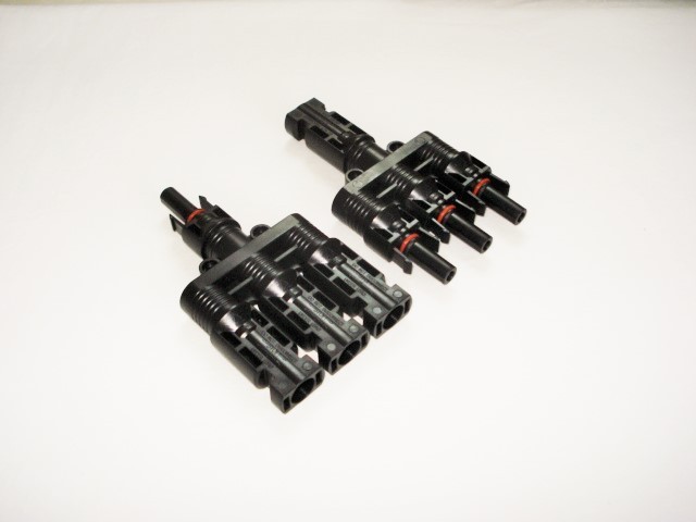 Pair of Three Way MC4 Connectors for connecting solar panels in Parallel for increasing Current to combined panel output